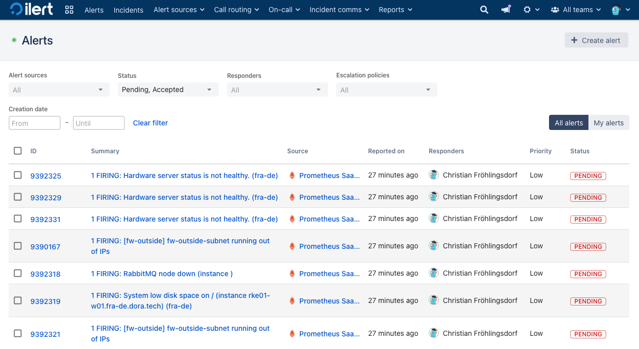 If you have not configured grouping for your alert sources you might end up with a view like this: