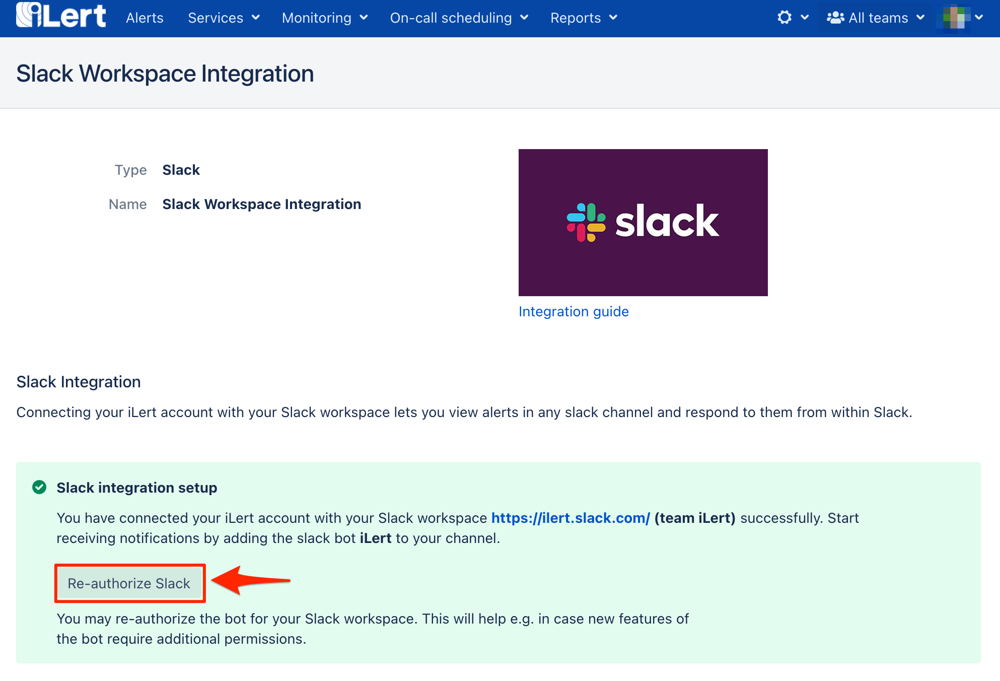 ## Authorize your Slack workspace <a href="#in_ilert" id="in_ilert"></a>