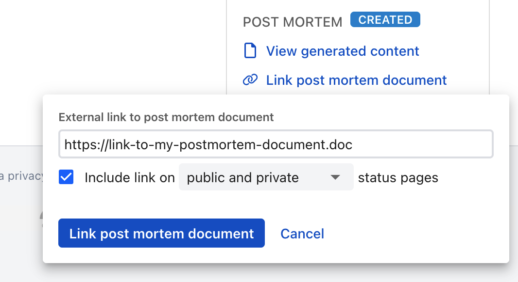 This will open a popup that offers multiple options to fine tune your postmortem document generation.