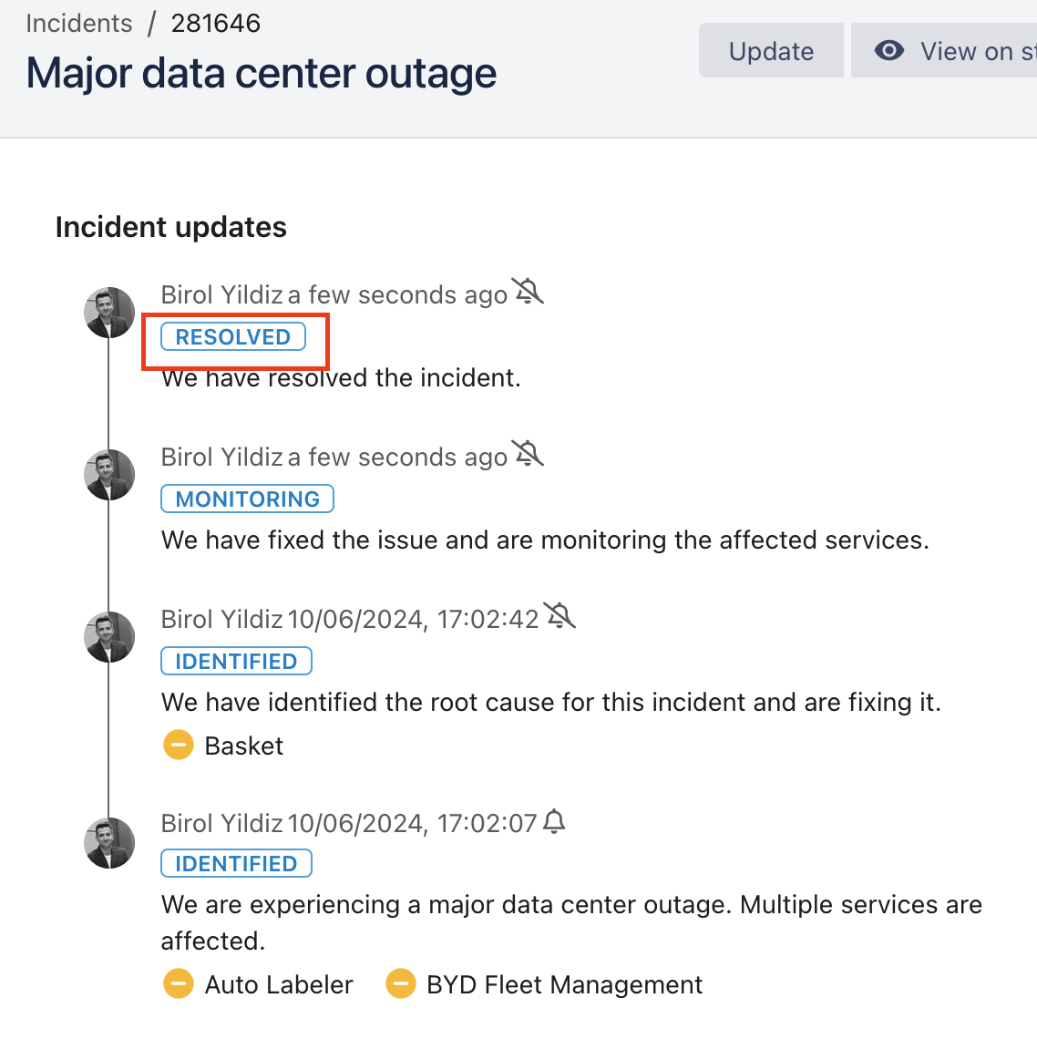 You may also choose to include your postmortem on all status pages that this incident appears on.