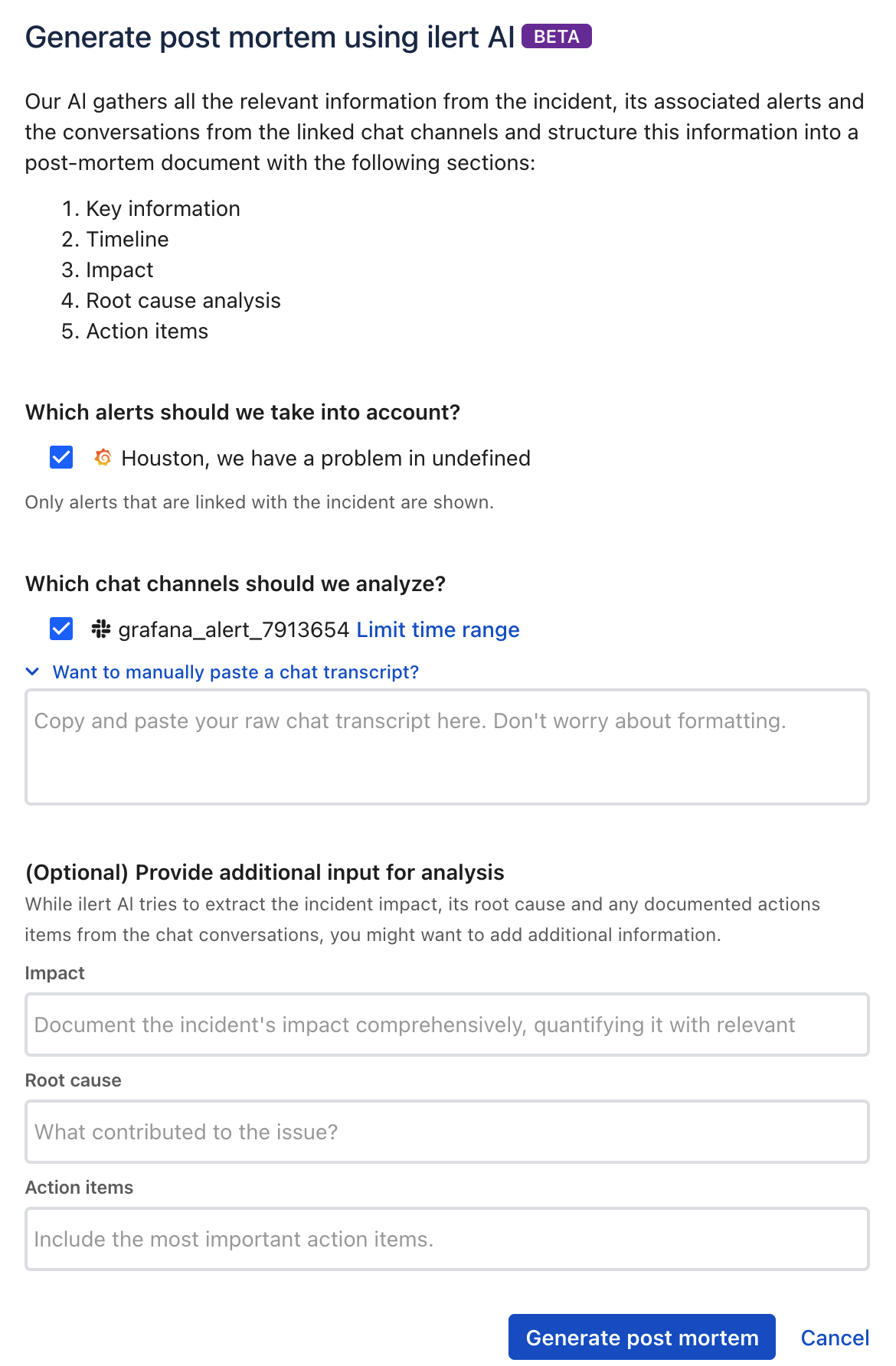 ### Using ilert AI to generate a postmortem doc