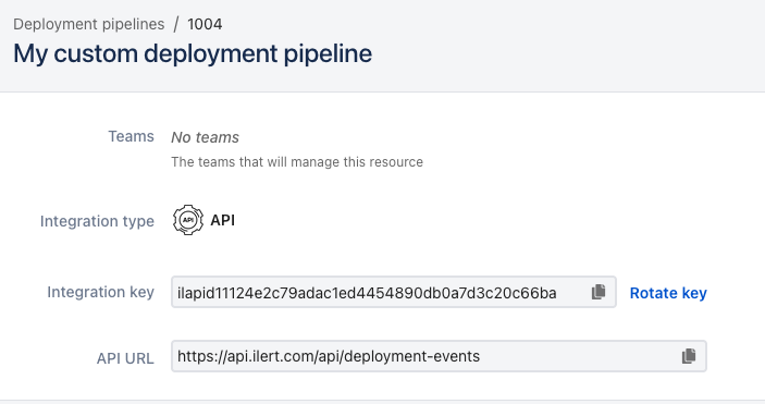 If you wish to integrate your custom deployment or CI & CD pipelines with ilert's deployment events, you can use the generic API deployment pipeline to generate an `integrationKey` and process your own events.&#x20;