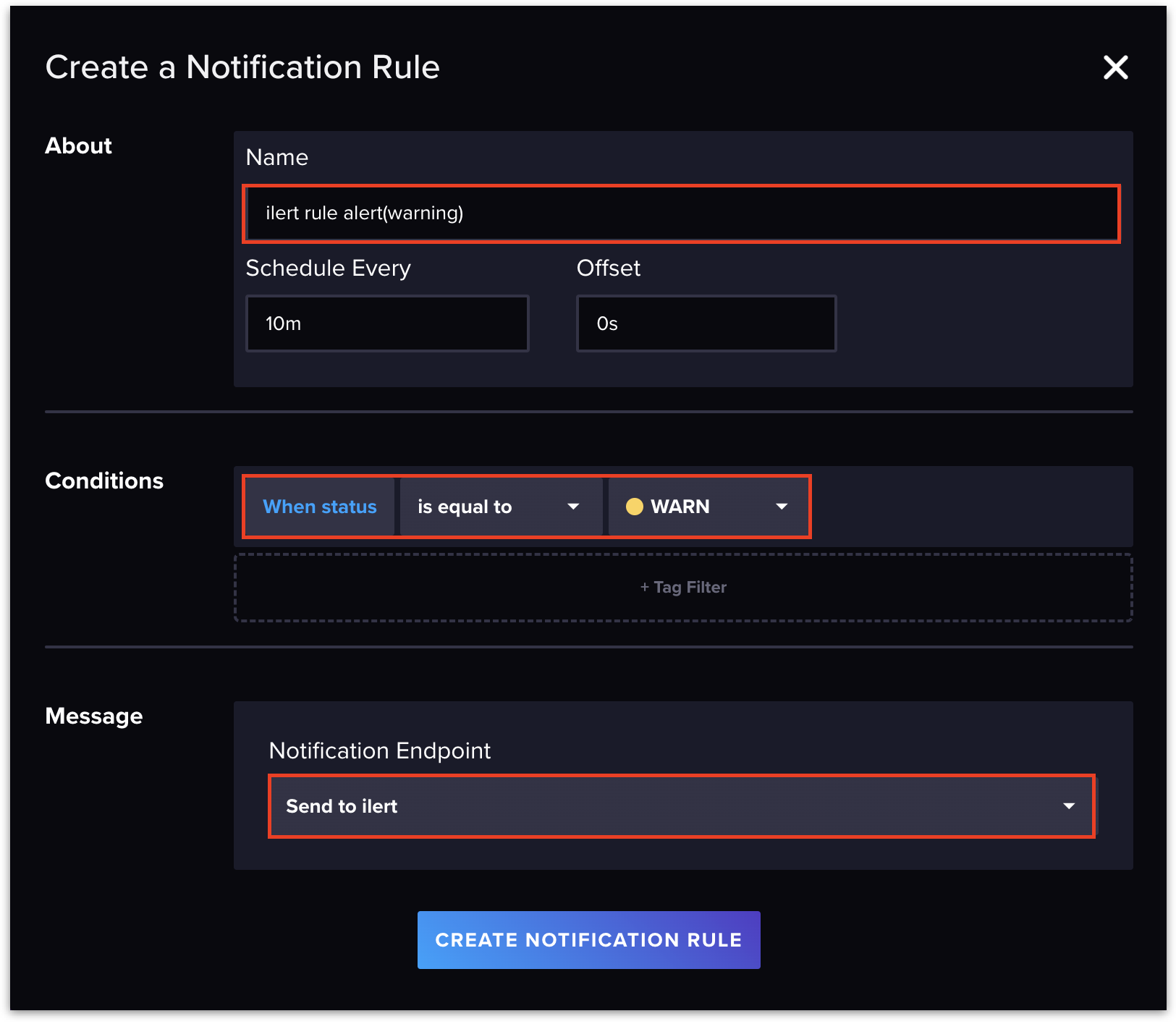 13. Add the following Notification Rules: