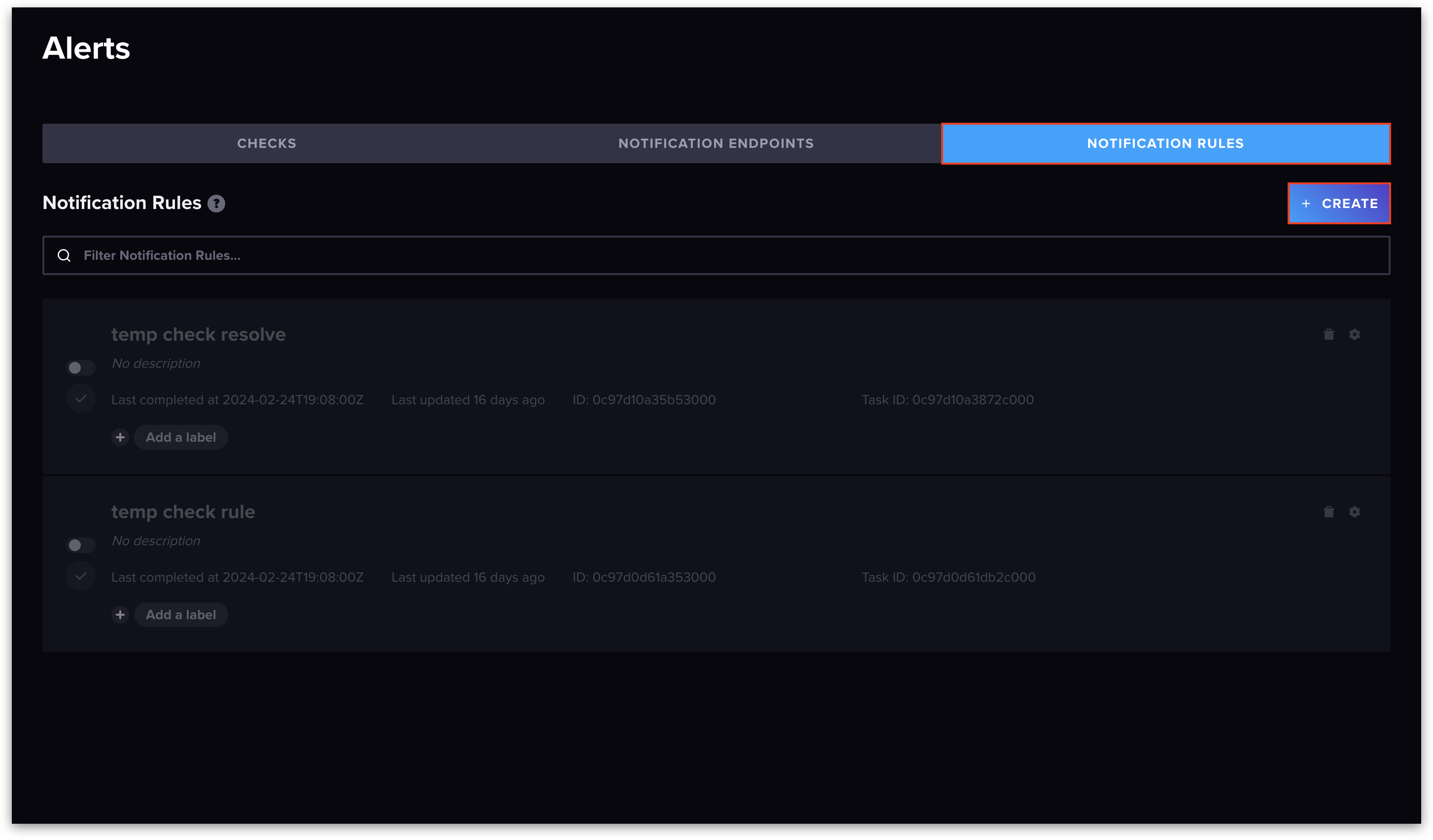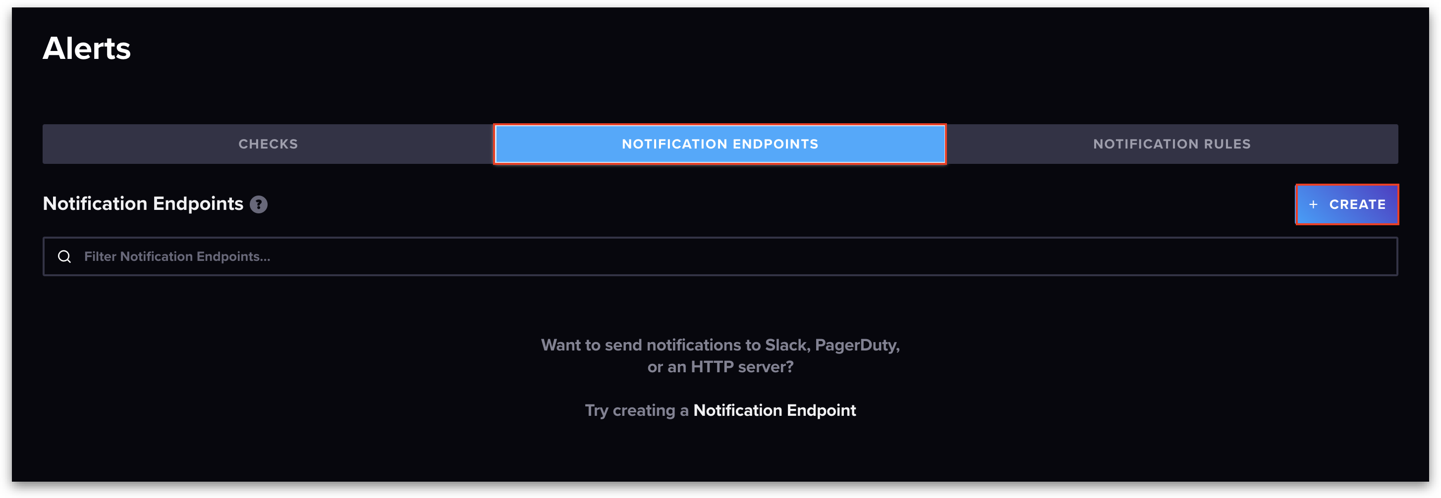 2. Click **Notification Endpoints -> Create**.