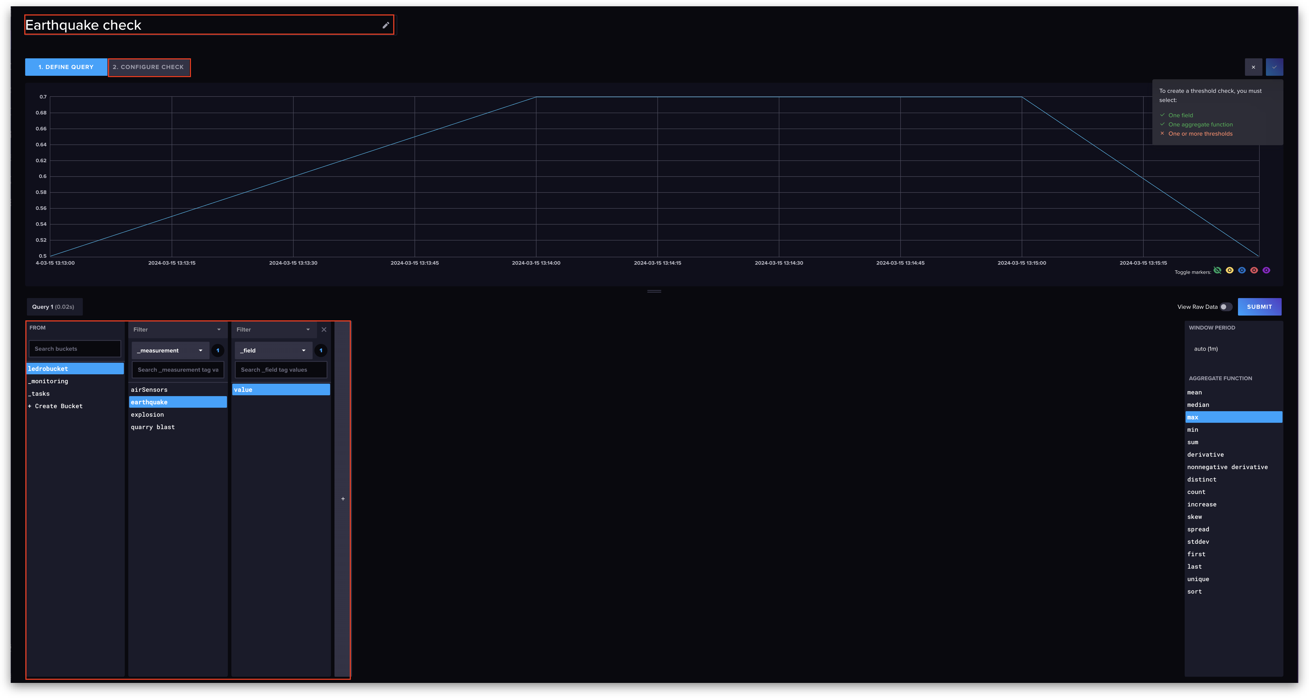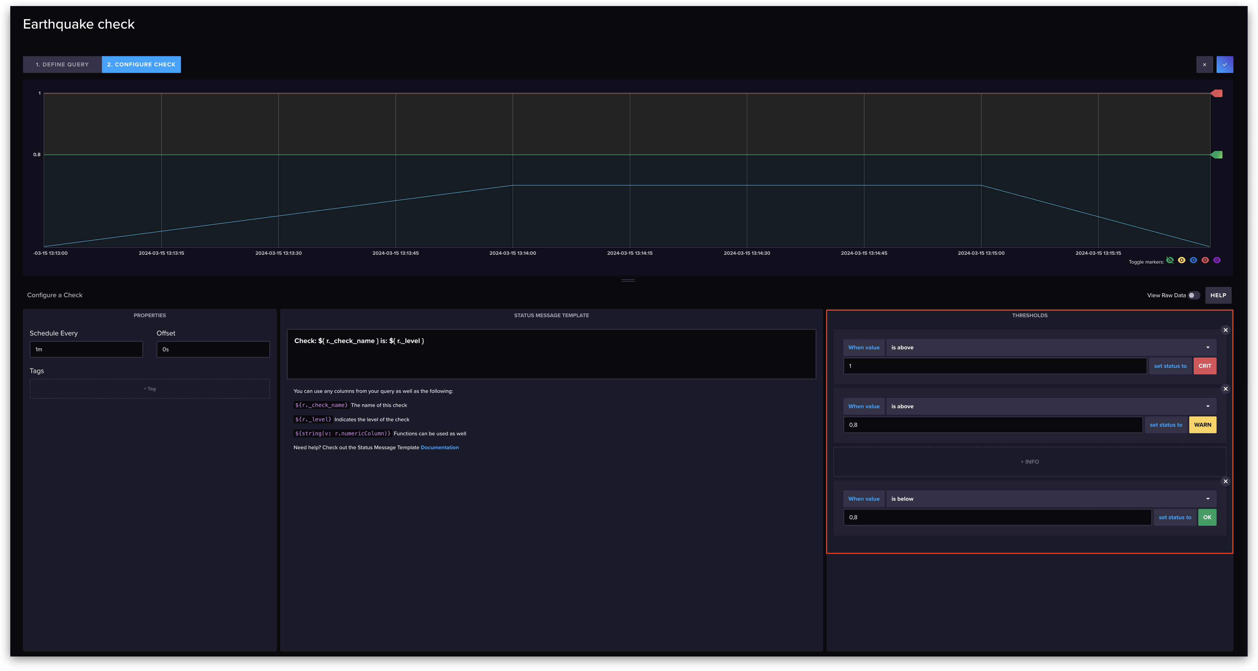 9. Click on **2. Configure Check** to set up the threshold.