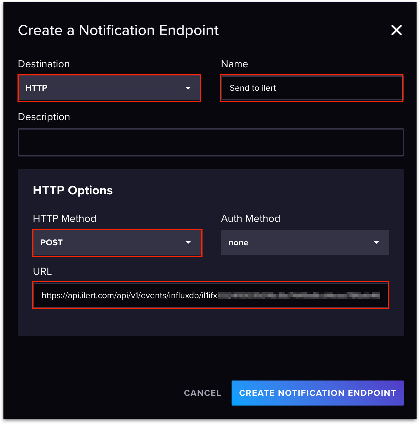 5. Click **Create Notification Endpoint** to save.