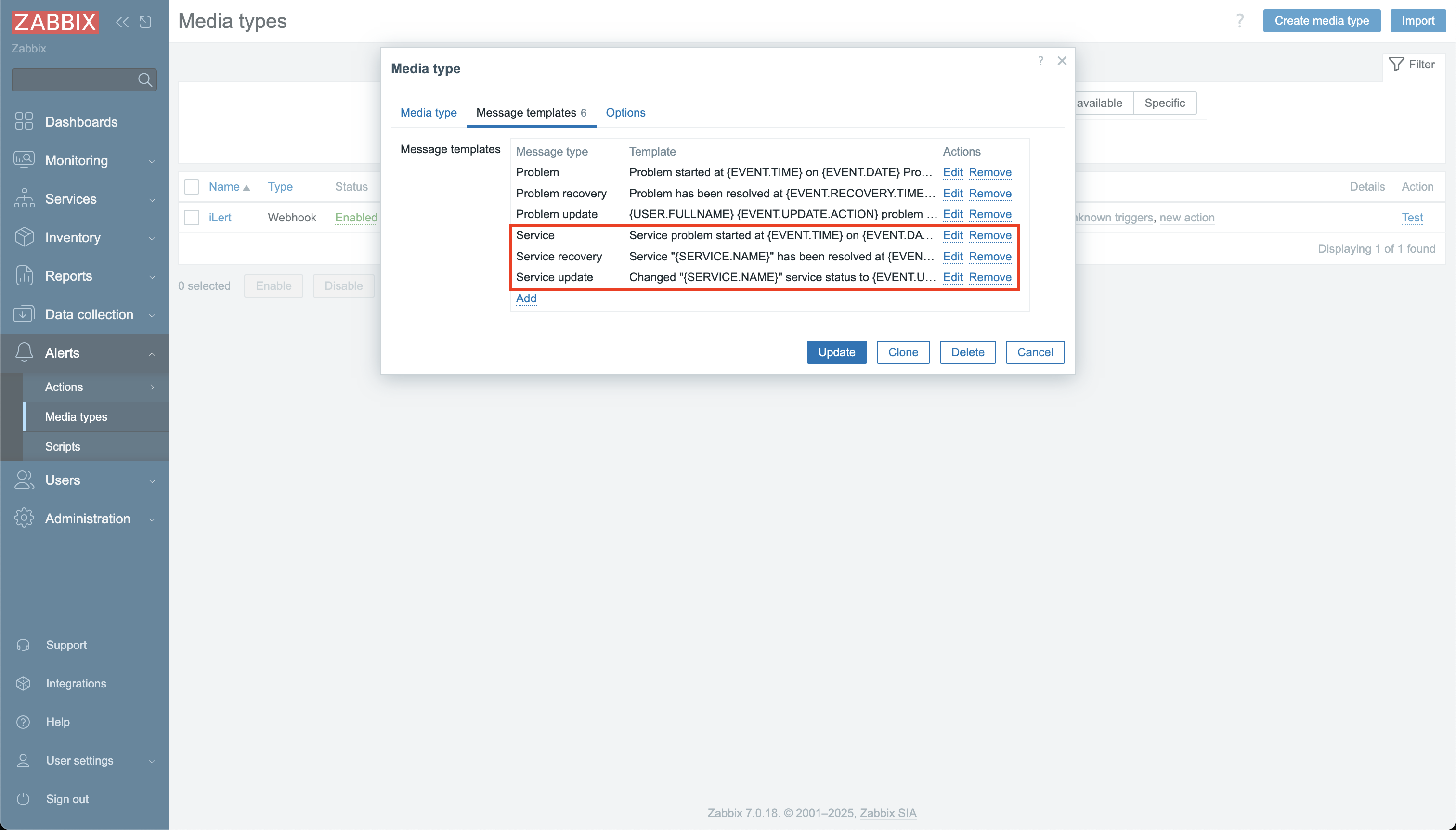 Are you using Zabbix 5.0.4 or higher? You can skip this section, if you're using Zabbix 5.0.4+, because as of Zabbix 5.0.4, the ilert media type is included in the distribution Zabbix.