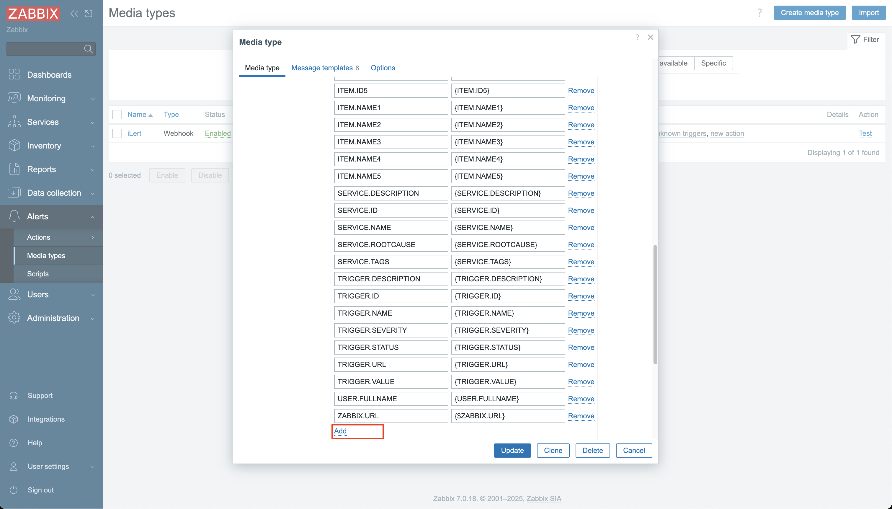 Import ilert media type (optional as of Zabbix 5.0.4)